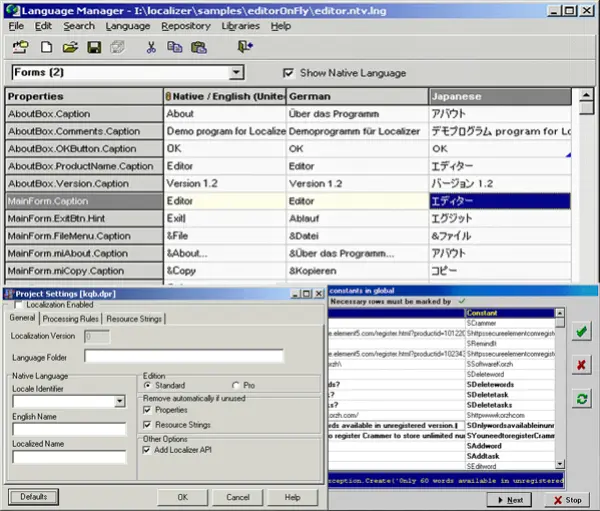 Localizer provides an effortless and straightforward approach to adding multilingual support to your Delphi or C++Builder applications.