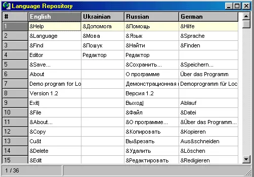 Another valuable feature of the Language Manager environment is the Language Repository. This multilingual dictionary can be populated by the user (translator) and aids in (semi) automatic translation. It's particularly convenient for translators working on multiple applications with similar interface elements.