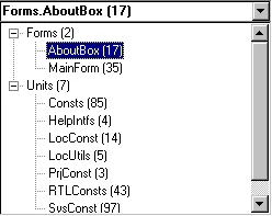 Section titled “Form/unit selection combo”This combo box allows to limit the set of displayed resources by one/all form(s) or by one/all unit(s) with constants. Choose it to cause appearance of the two-level tree that contains separately form names and unit names sorted alphabetically.